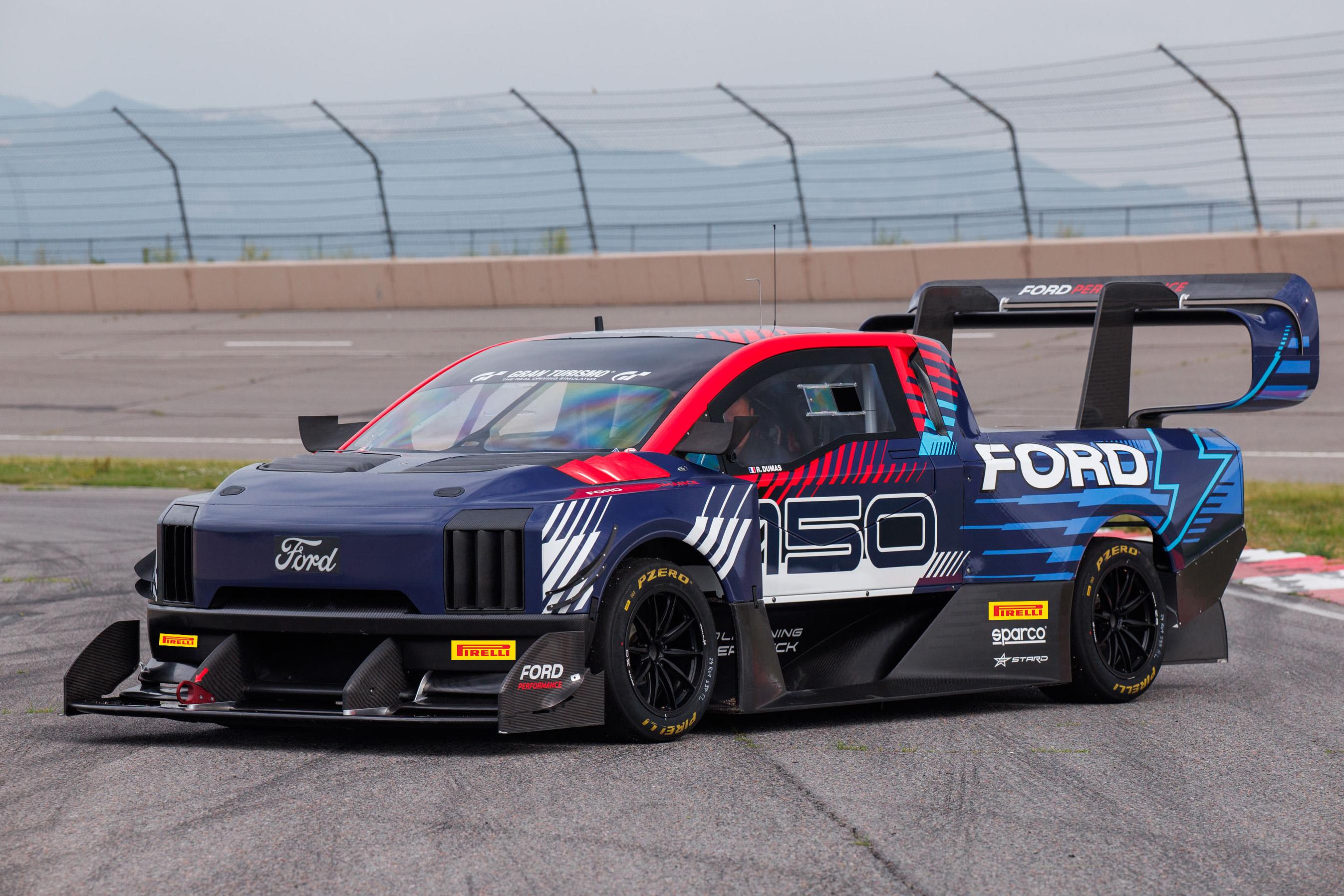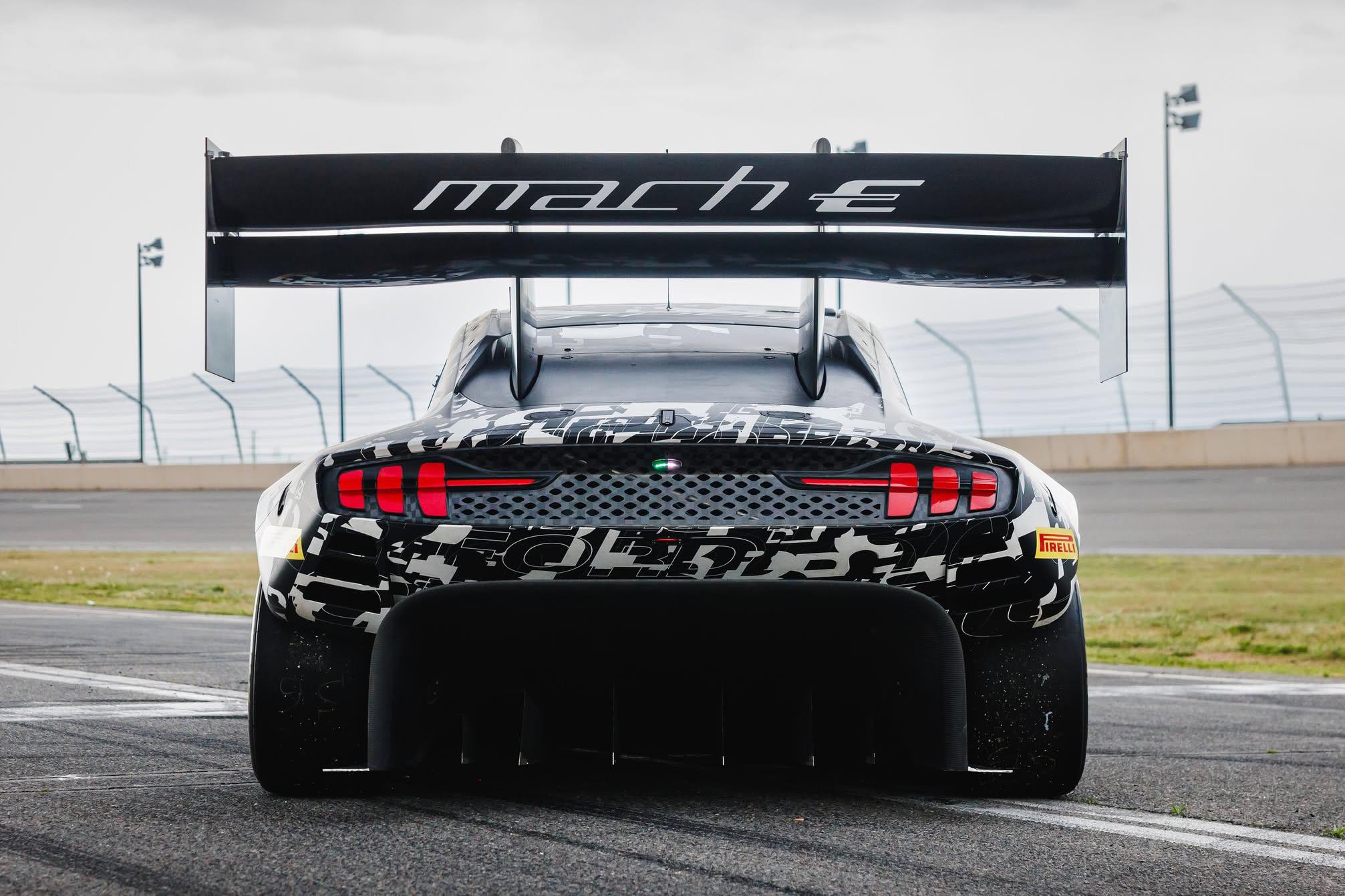 So far Ford hasn’t released any details about the Super Mustang Mach-E, except to say its outlandish aero kit generates a maximum of 2835kg of downforce.