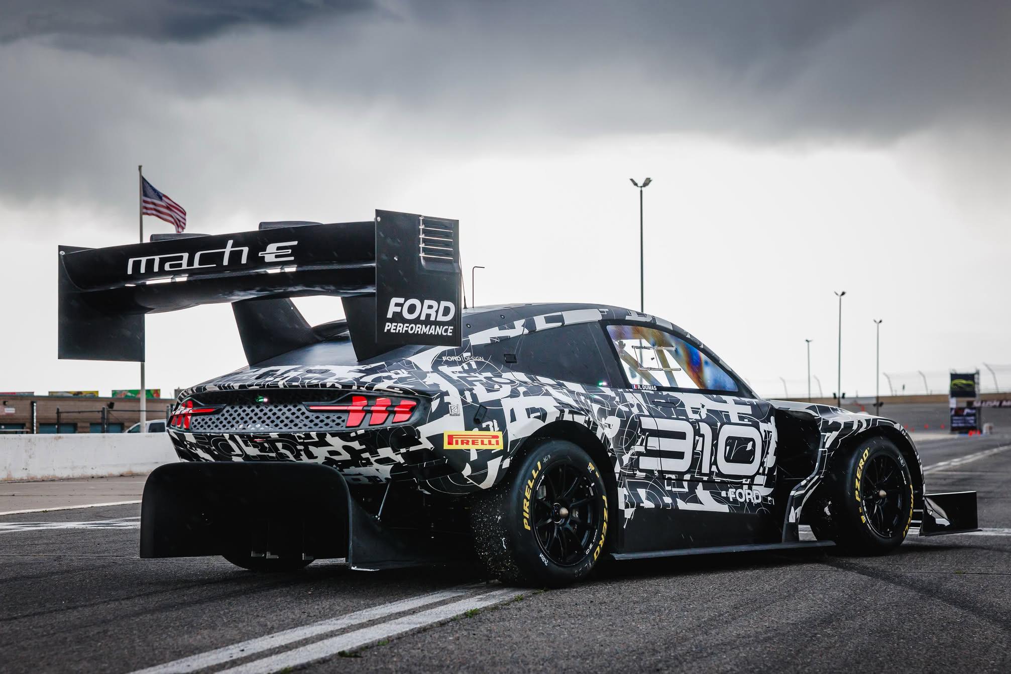 The Super Mustang Mach-E rides on OZ Racing wheels shod with slick Pirelli tyres.