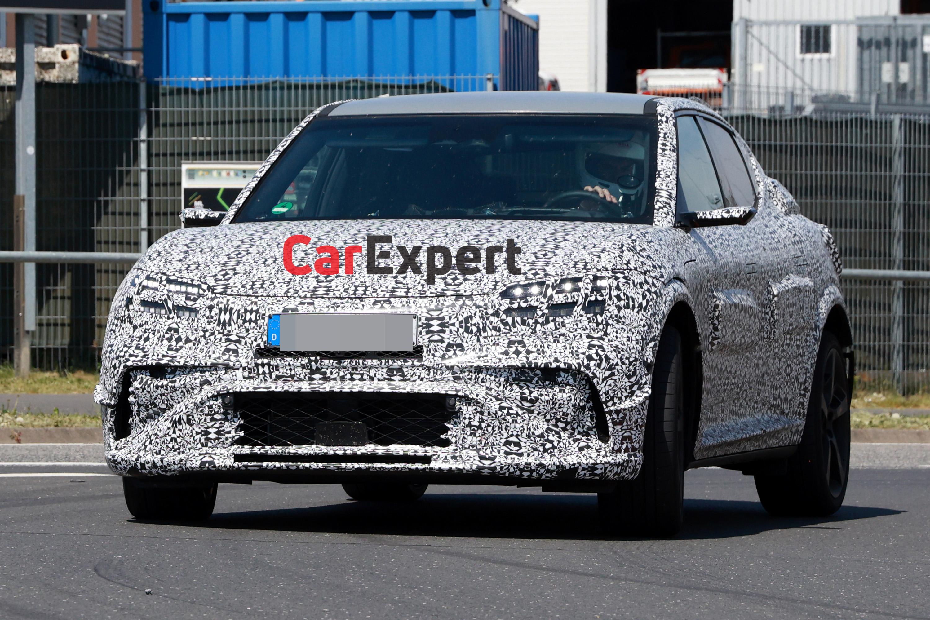Spotted outside the Nurburgring in Germany, this prototype has a new, more aggressive front fascia with larger air intakes and sculpted surrounds that look very similar to the front clip of the 2024 GV60 Magma concept car.