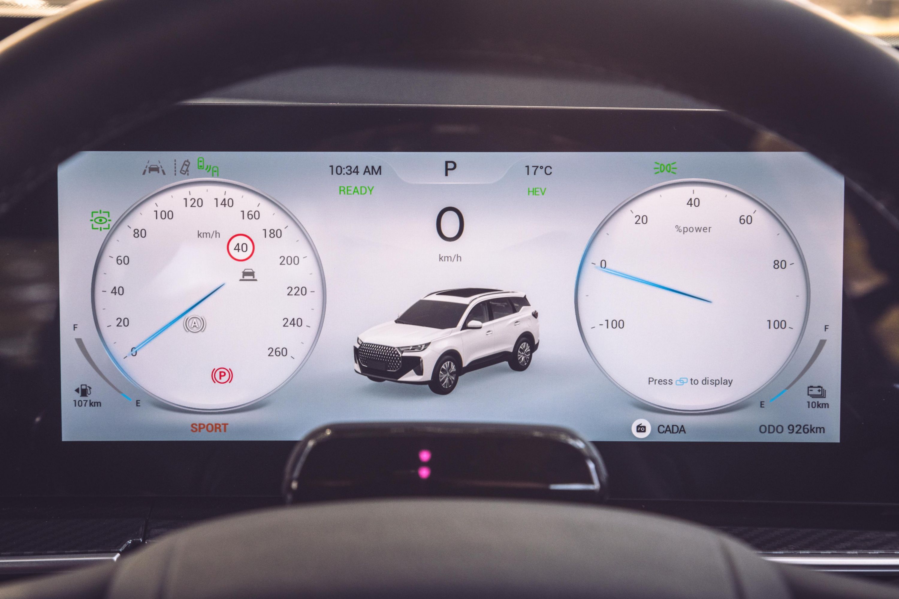 Chery’s Super Hybrid system comprises a 1.5-litre four-cylinder turbo-petrol engine, producing 105kW of power and 215Nm of torque. It’s paired with a Dedicated Hybrid Transmission, which incorporates a 150kW/310Nm electric motor, though combined outputs aren’t quoted.
