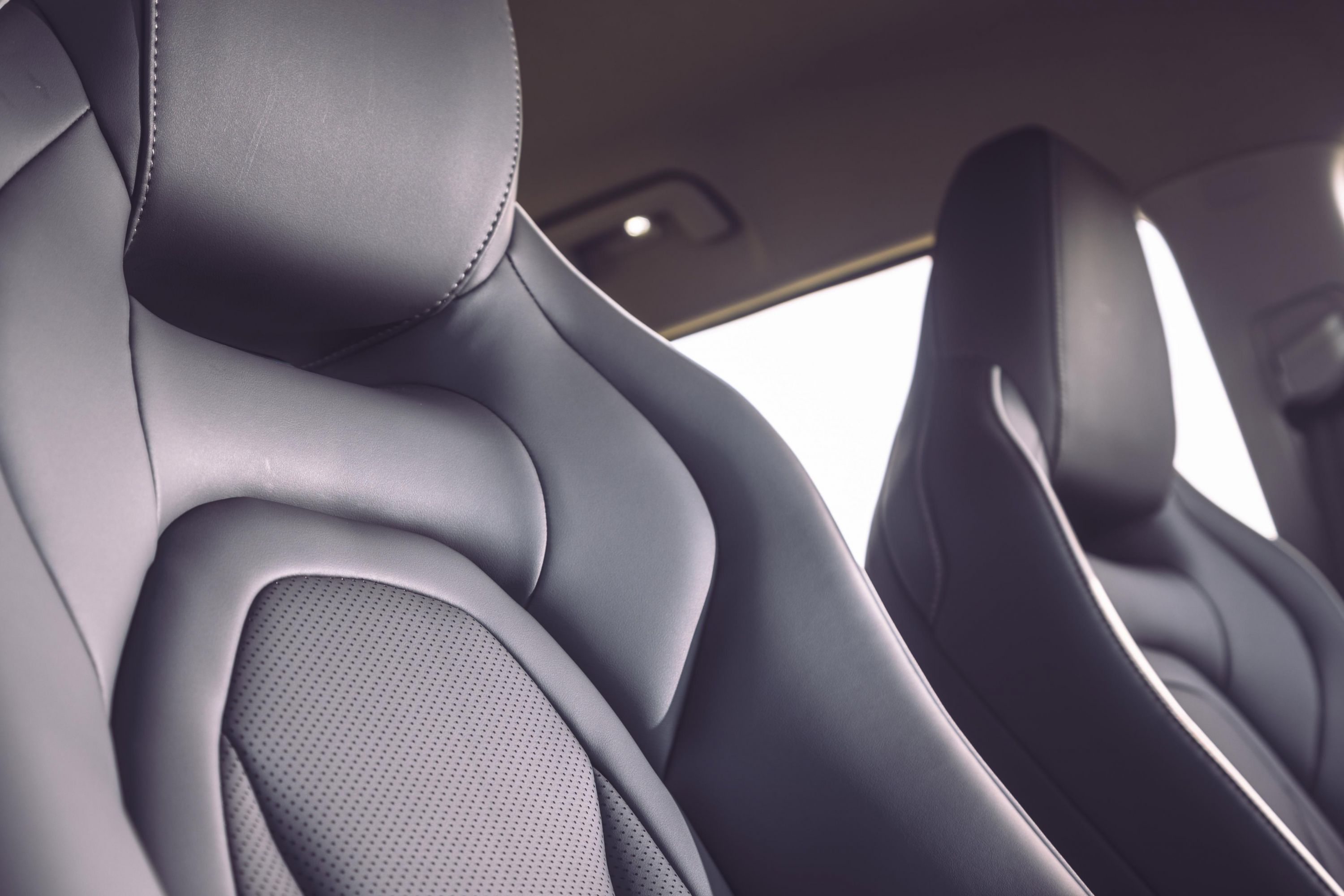 The car’s front seats are quite comfortable. They’re on the firmer side but offer solid bolstering, and they’re finished in what appears to be high-quality synthetic leather.