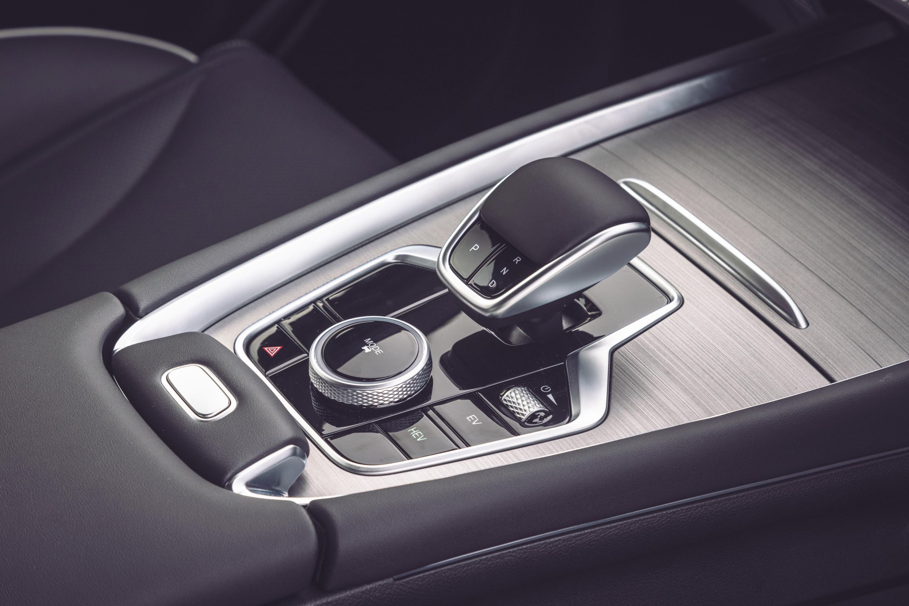 This panel features a drive mode dial and dedicated HEV/EV buttons, along with a small scroll wheel for volume control. That’s all you get on that front.