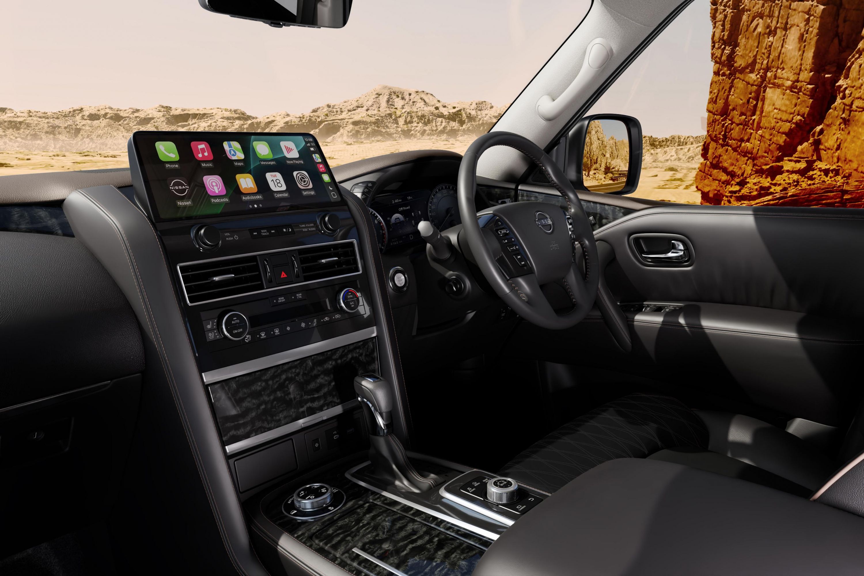 For MY25, every Patrol now includes an updated dashboard with a larger 12.3-inch touchscreen infotainment system offering wireless Apple CarPlay, Android Auto, and satellite navigation. There’s also a wireless phone charger and a 7.0-inch digital TFT display that integrates an off-road monitor.