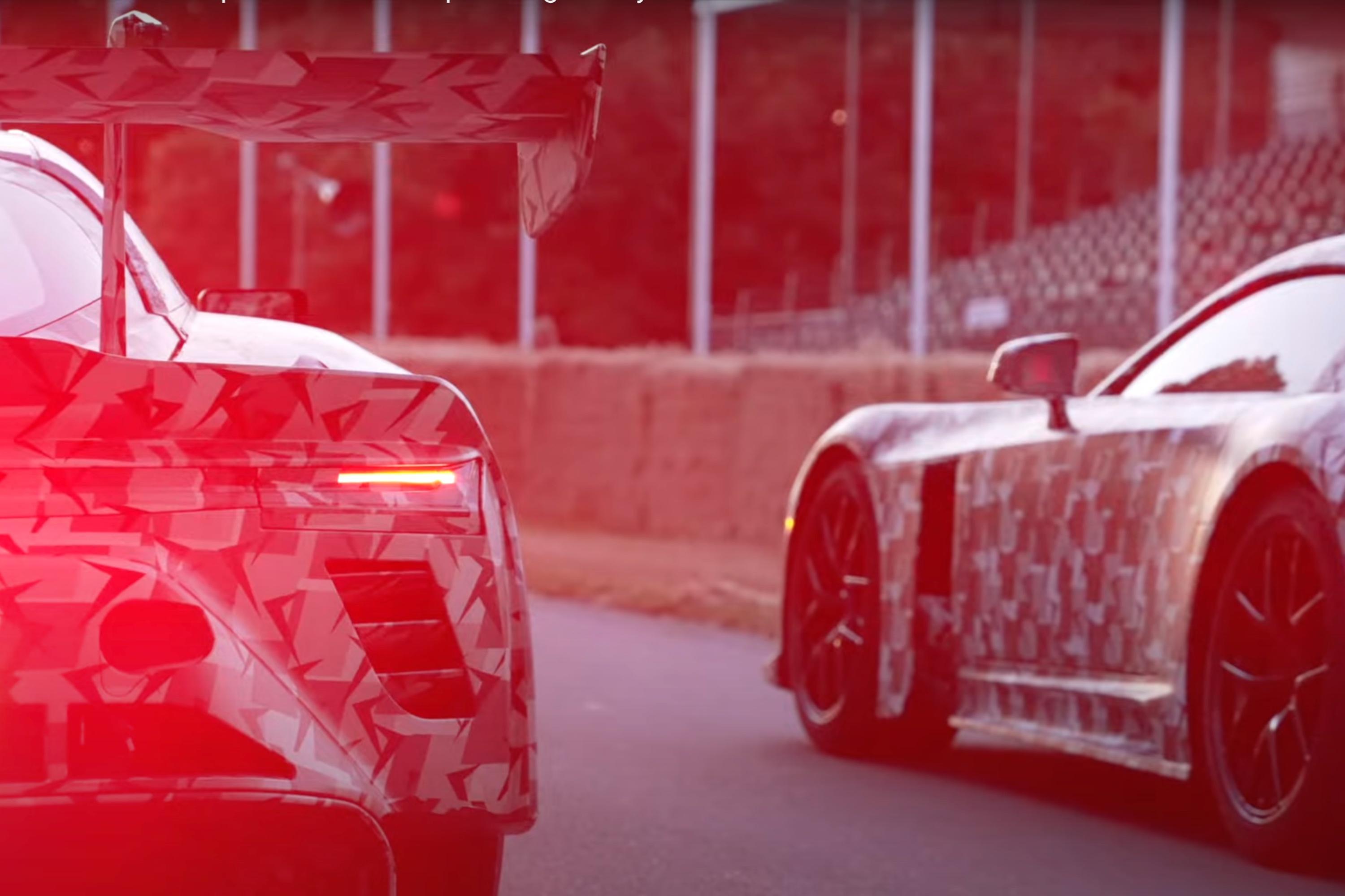 While both were driven up the famous British hill climb in a series of demonstration runs, Toyota was coy on the details – including the auto brand/s, model name/s and engine/s of the low-slung, wide-bodied sports cars.