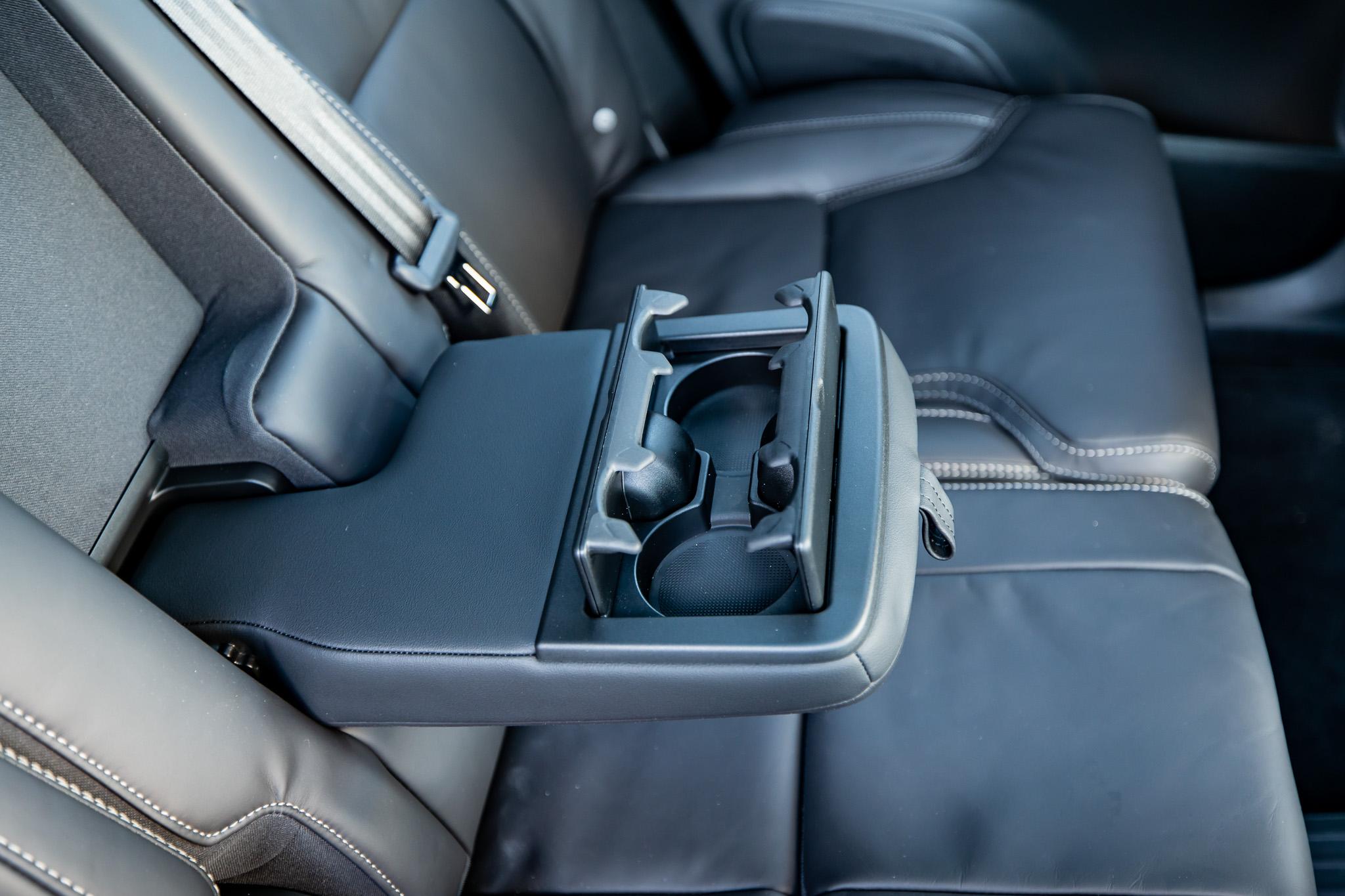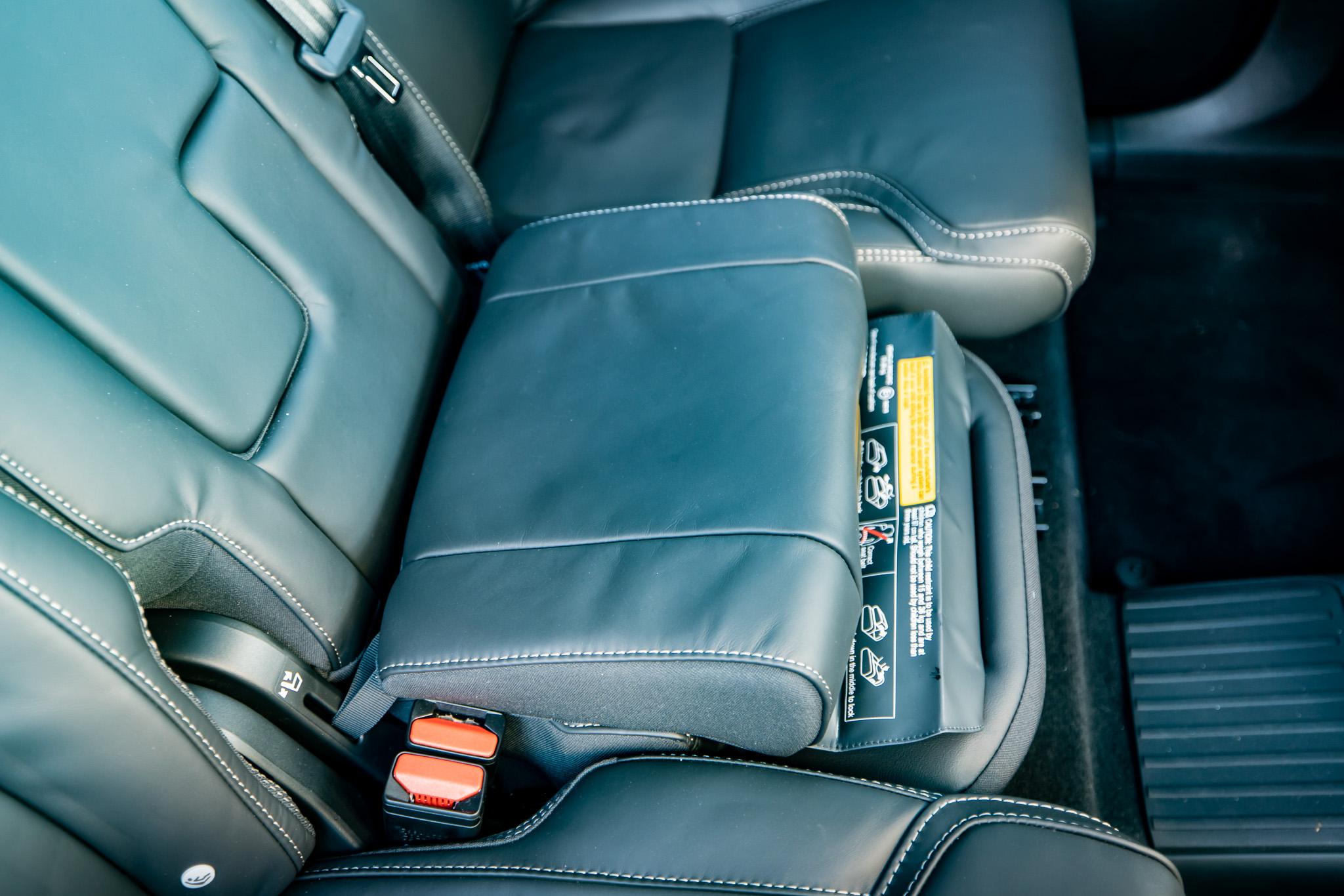 Middle-row riders get USB-C ports, mesh map pockets, bottle holders in the doors, a flip-down armrest, 40:20:40 backrest folding, and there’s even a middle-seat booster system for kiddos.