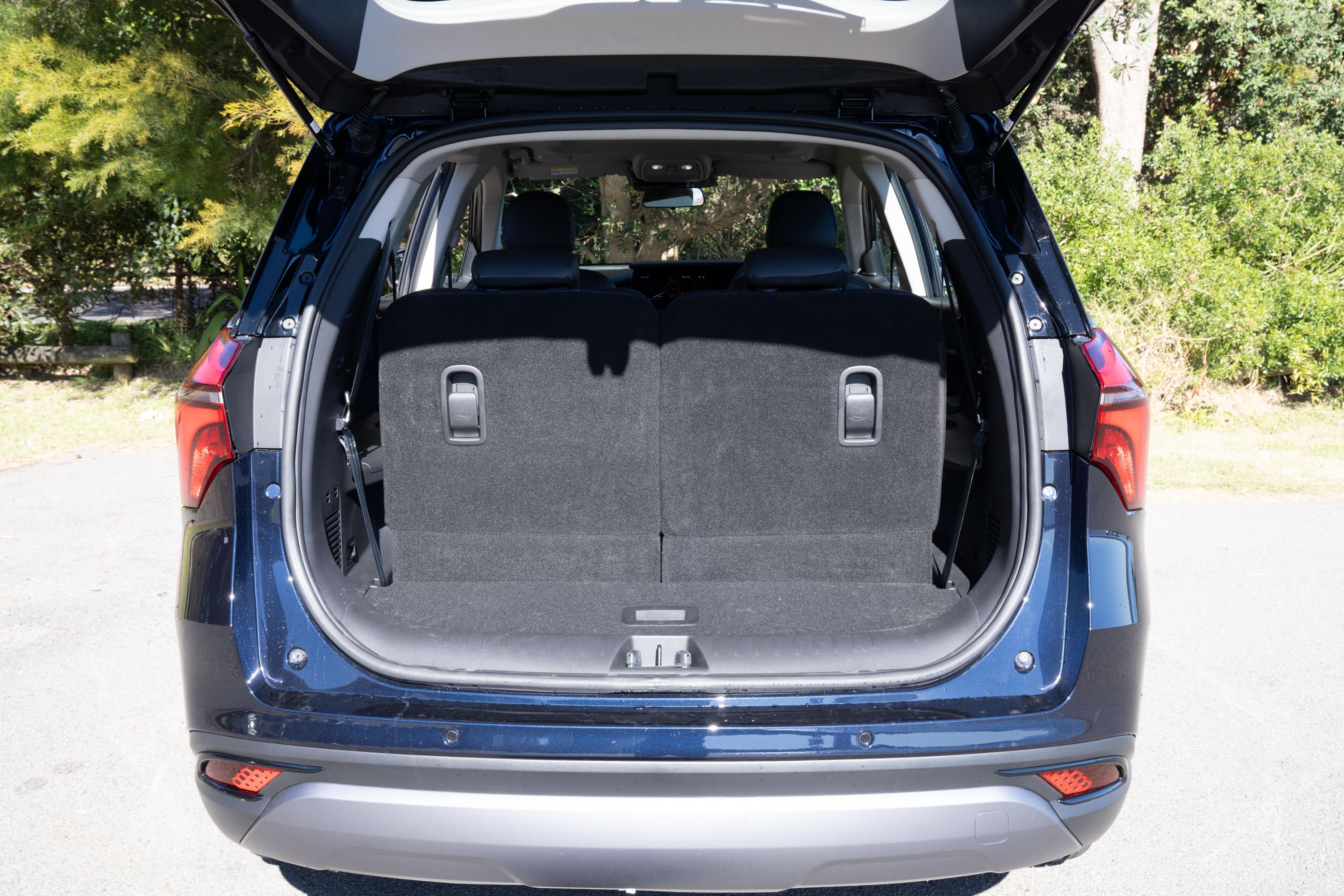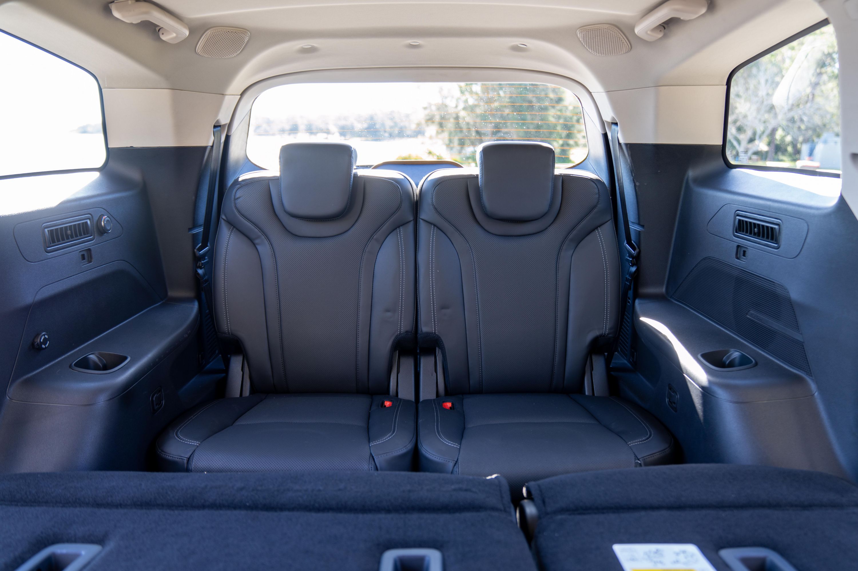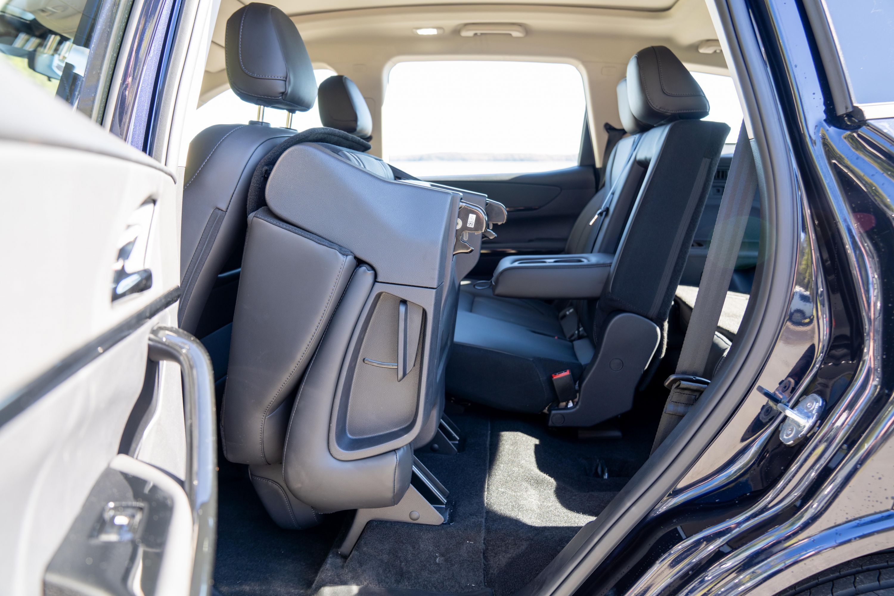 It’s also relatively easy to access thanks to a simple one-touch lever on the passenger side (which is, smartly, the kerb side) of the middle-row seat, which folds it down and flips it forward to create enough space to step up and into the third row, rather than climbing up and over.