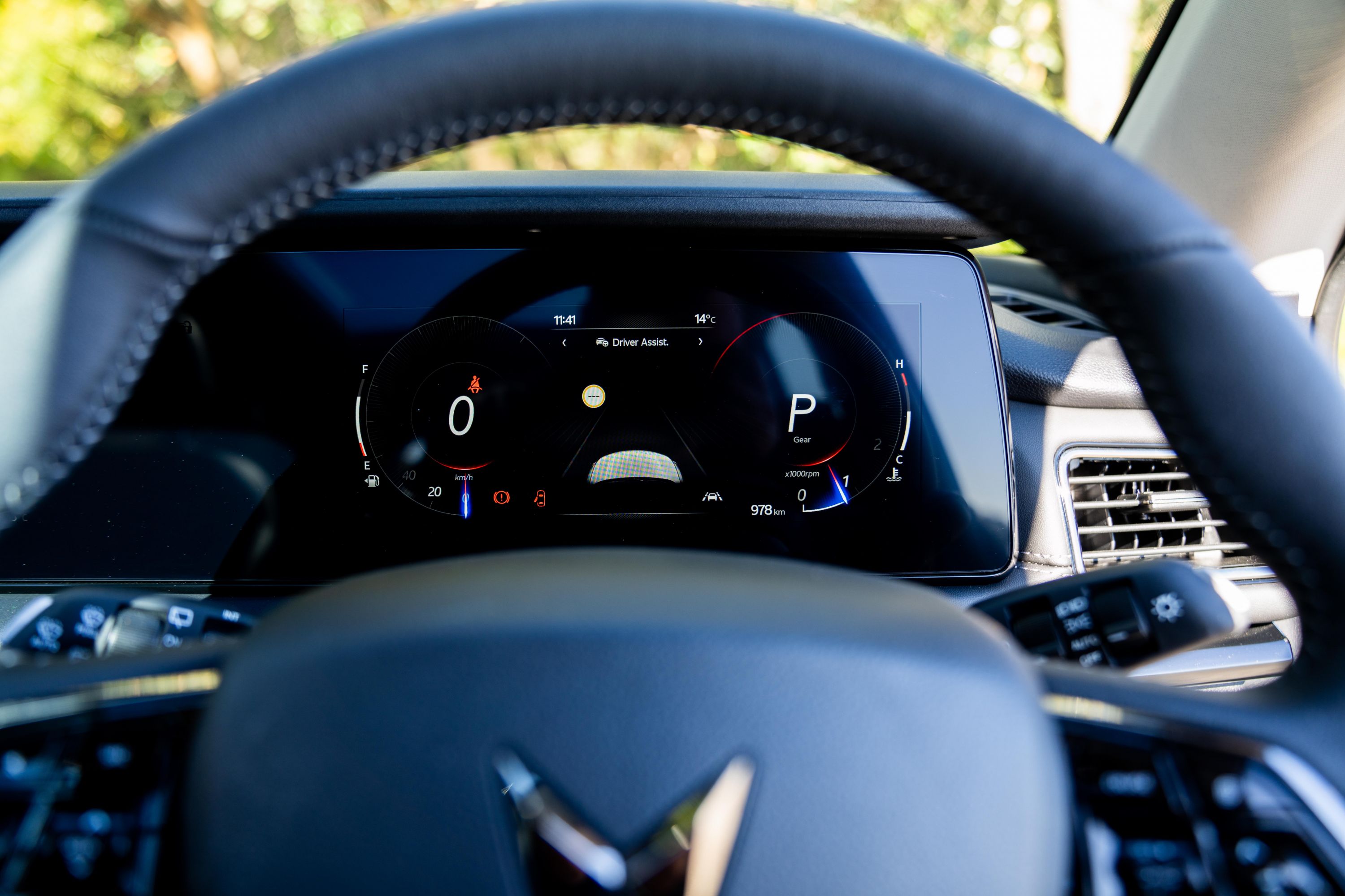 The instrument cluster has two round dials for speed and engine revs, with oversized numerical readouts in the centre of each to show exact road speed and gear position respectively, while in between there is a multi-function screen that can display a myriad of information, including replicating the navigation display and instructions from the main screen. It also flashes up with a side view of the adjacent lane from the wing mirrors when the indicators are activated.