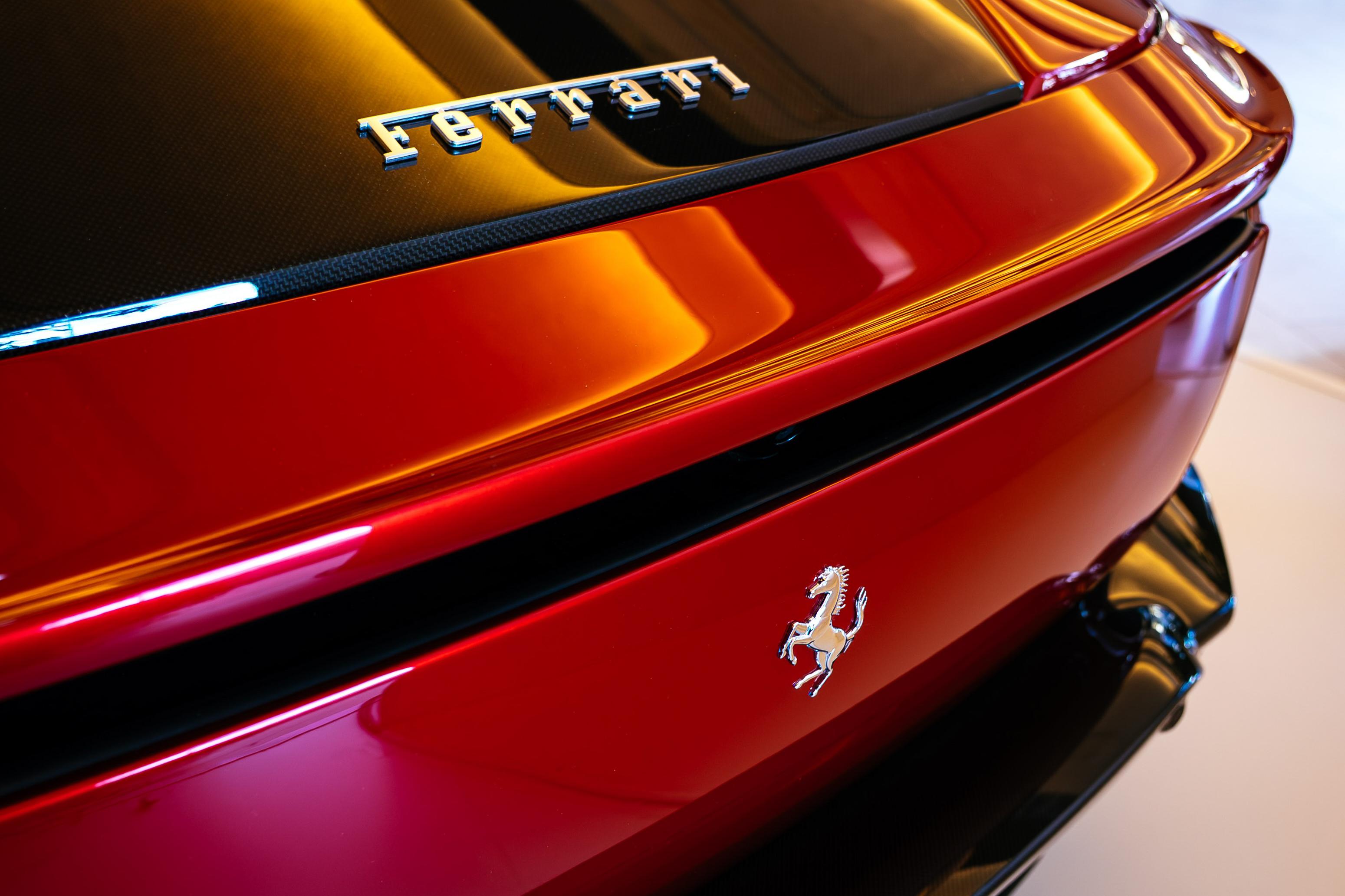 A similar theme is applied at the rear, where the tail-lights are hidden within what Ferrari refers to as “graphical cuts”. An active rear spoiler with three positions – Low Drag, Medium Downforce and High Downforce – is neatly integrated into the rump, and in its most aggressive setting it’s claimed to generate 110kg of downforce over the rear axle at 250km/h.