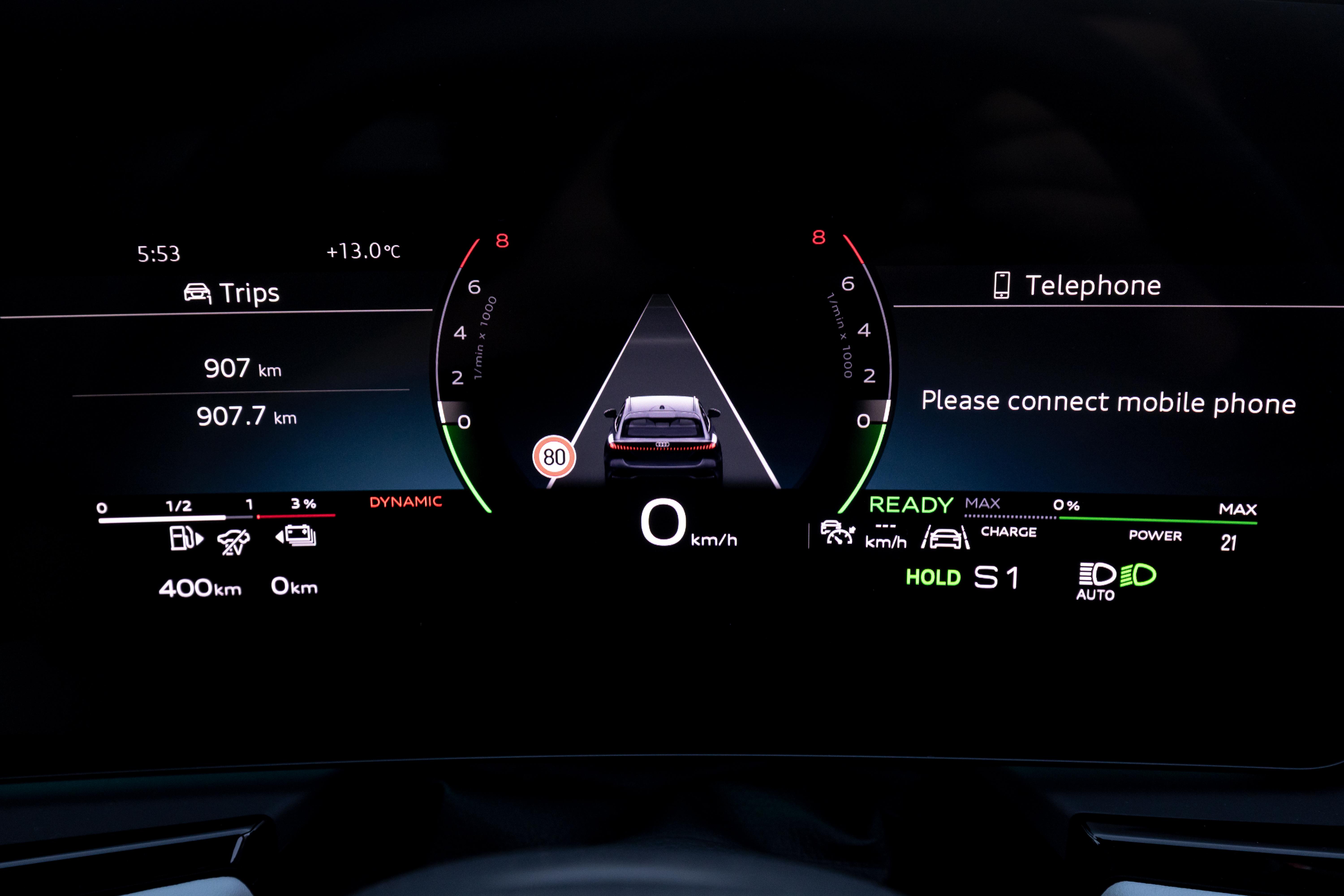 Compared to Audi’s pared-back, fairly traditional cockpits of old, the new layout and interface can be a little daunting, even jarring. There’s a lot of piano black in the bezels of the curved housing of the main driver displays, as well as the centre console, too.