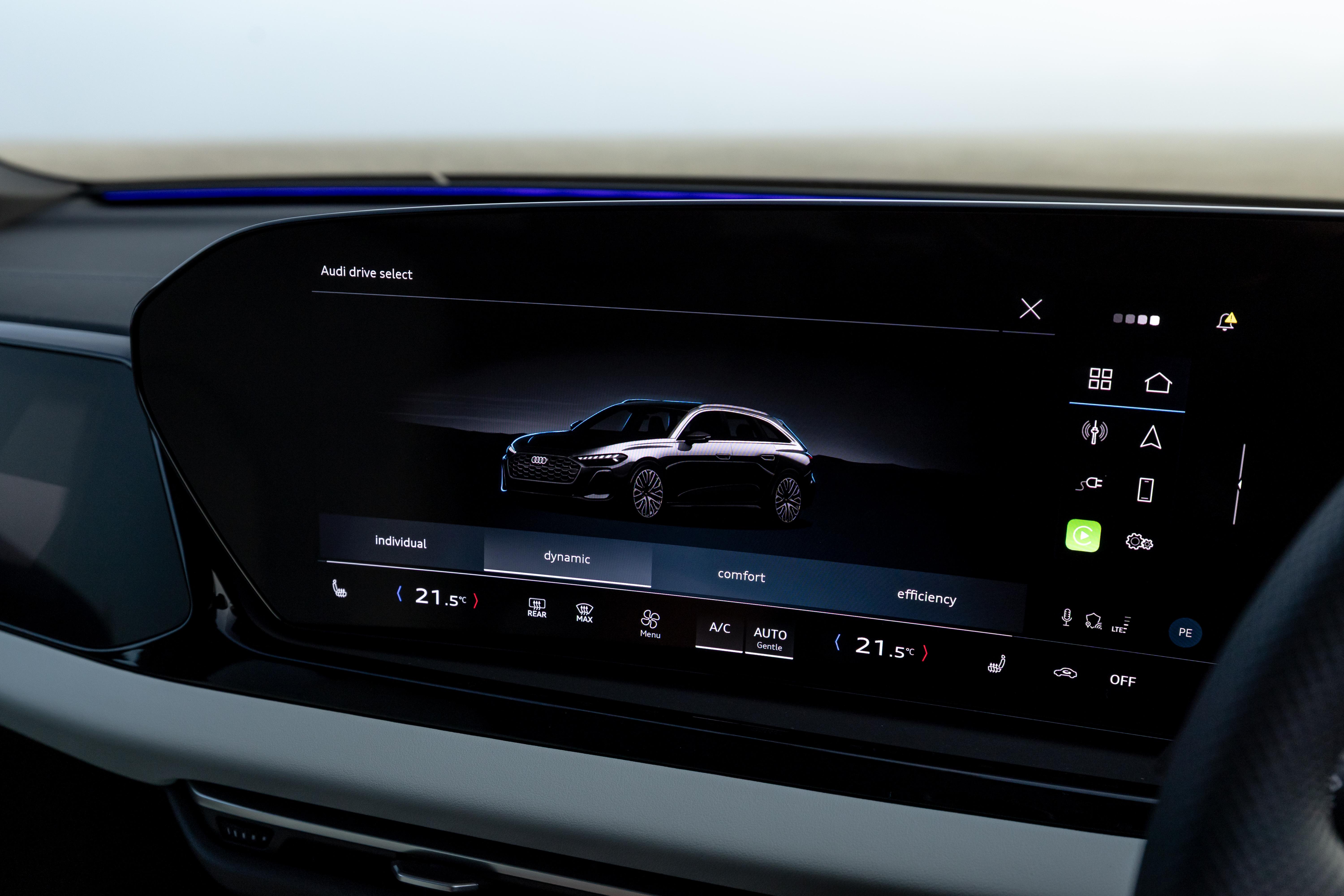 The standard surround-camera system is helpful though, given the high shoulder lines and thick rear pillars. It makes slotting this 4.83m-long, 1.86m-wide Audi into tight parking spaces that little bit easier.